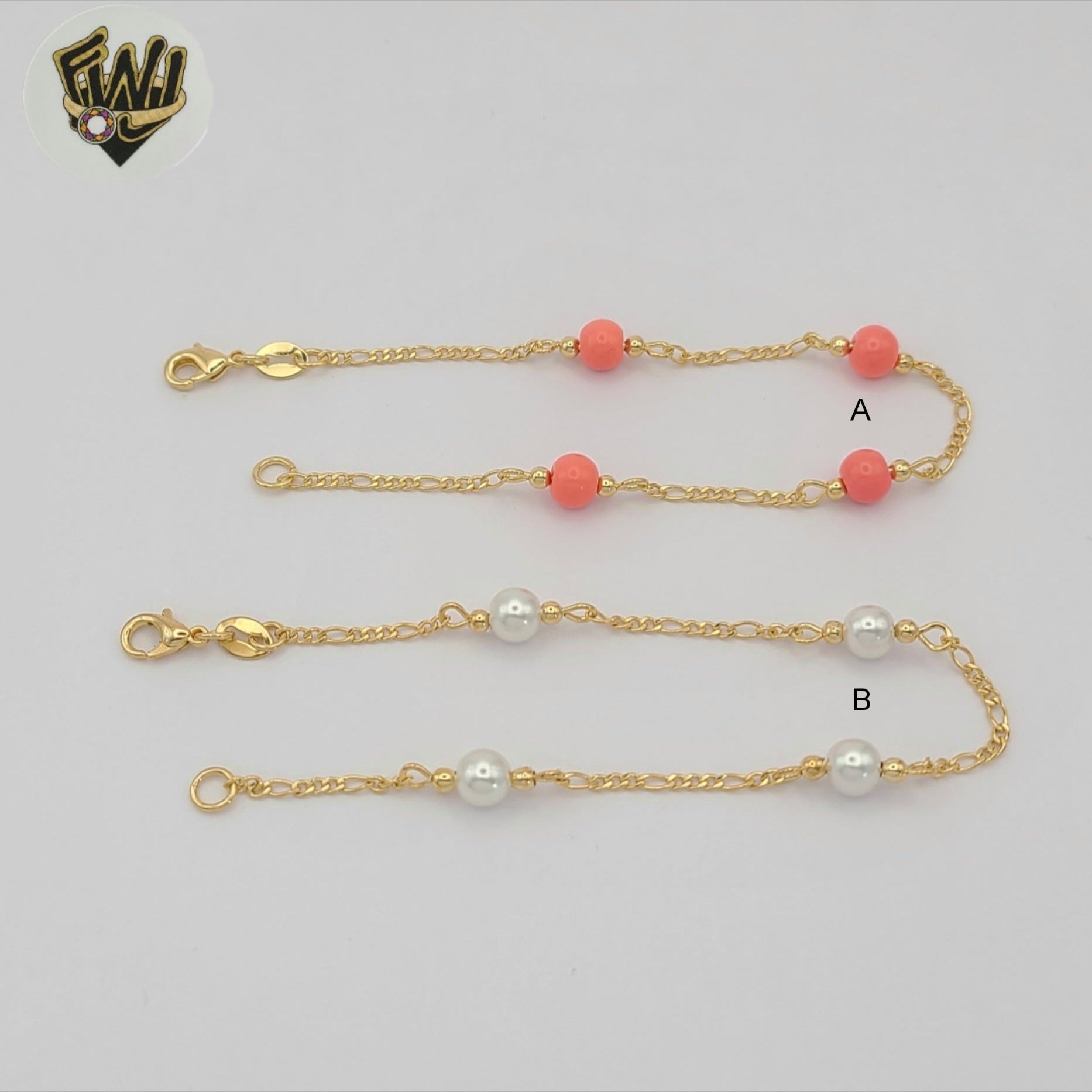 - Figaro link with Coral or Pearl Beads Bracelet. (No real Pearl)