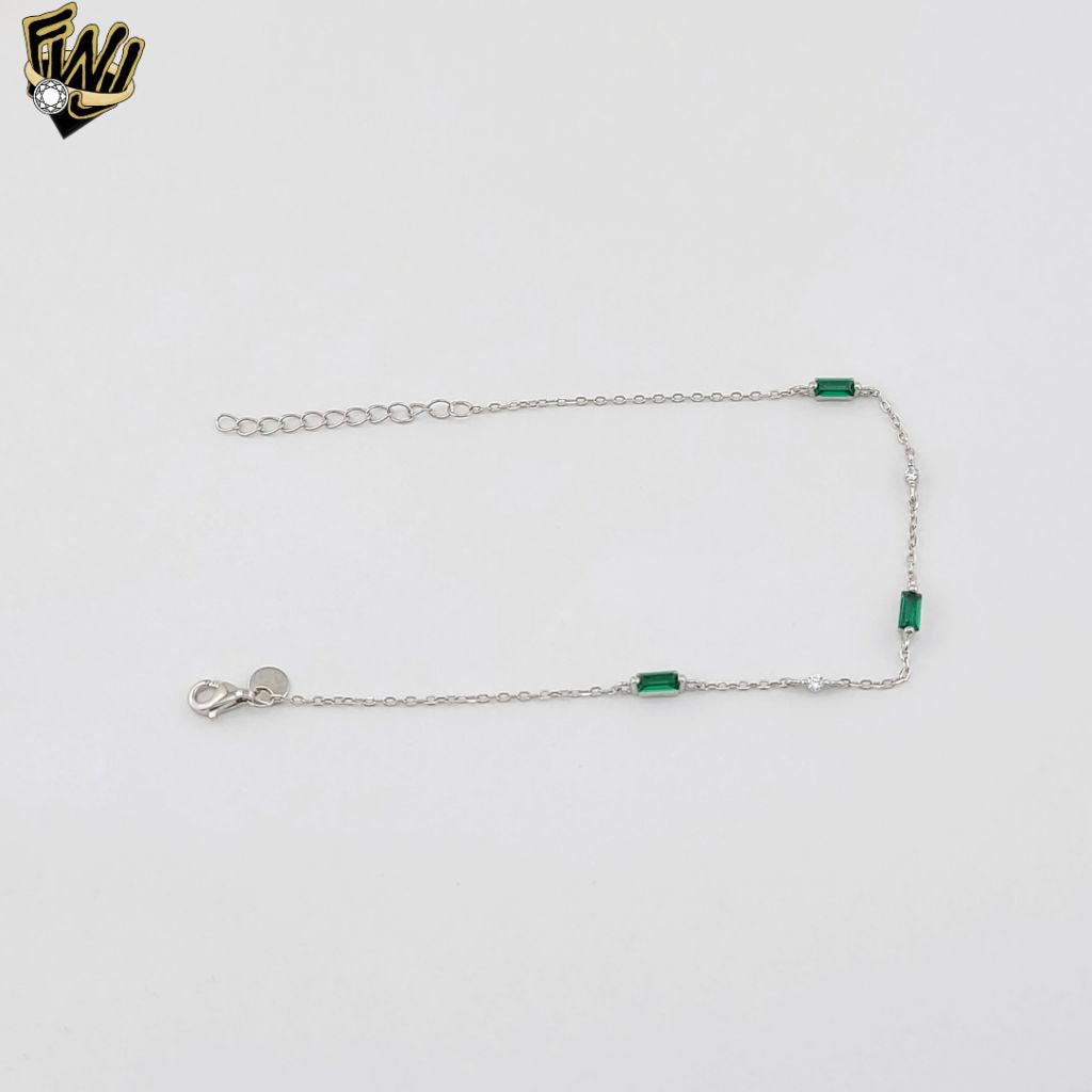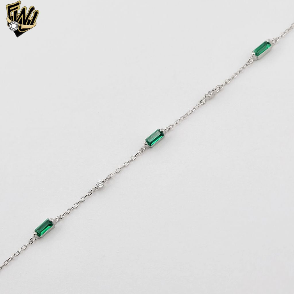 (2-0432) 925 Sterling Silver - 1mm Rolo Link Green Zircon Bracelet.