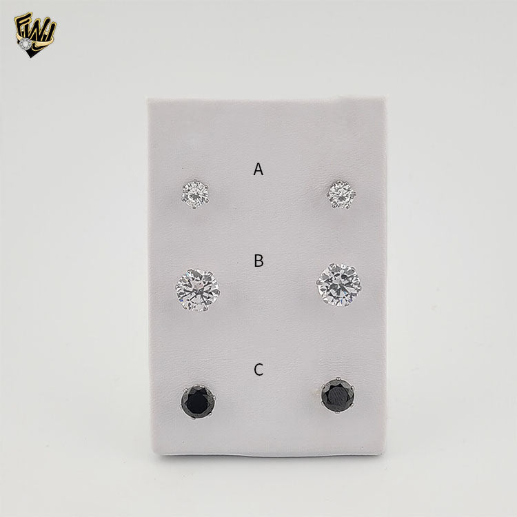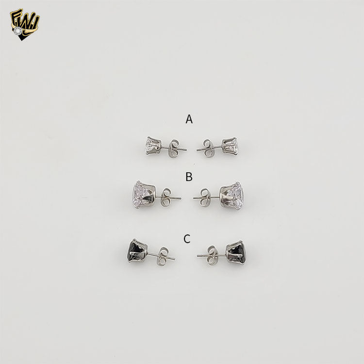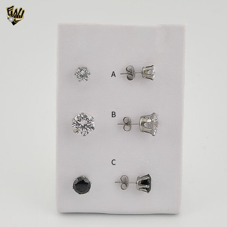 (4-2194) Stainless Steel - Round Zircon Stud Earrings.