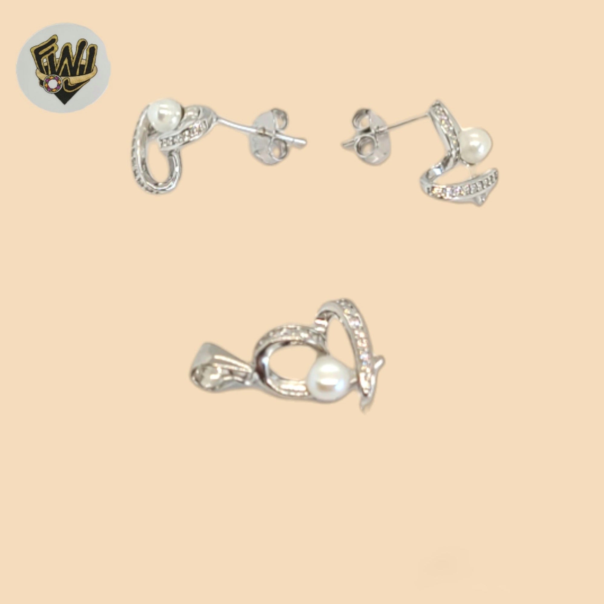 (2-6353-1) 925 Sterling Silver - Pearl and Heart Set.
