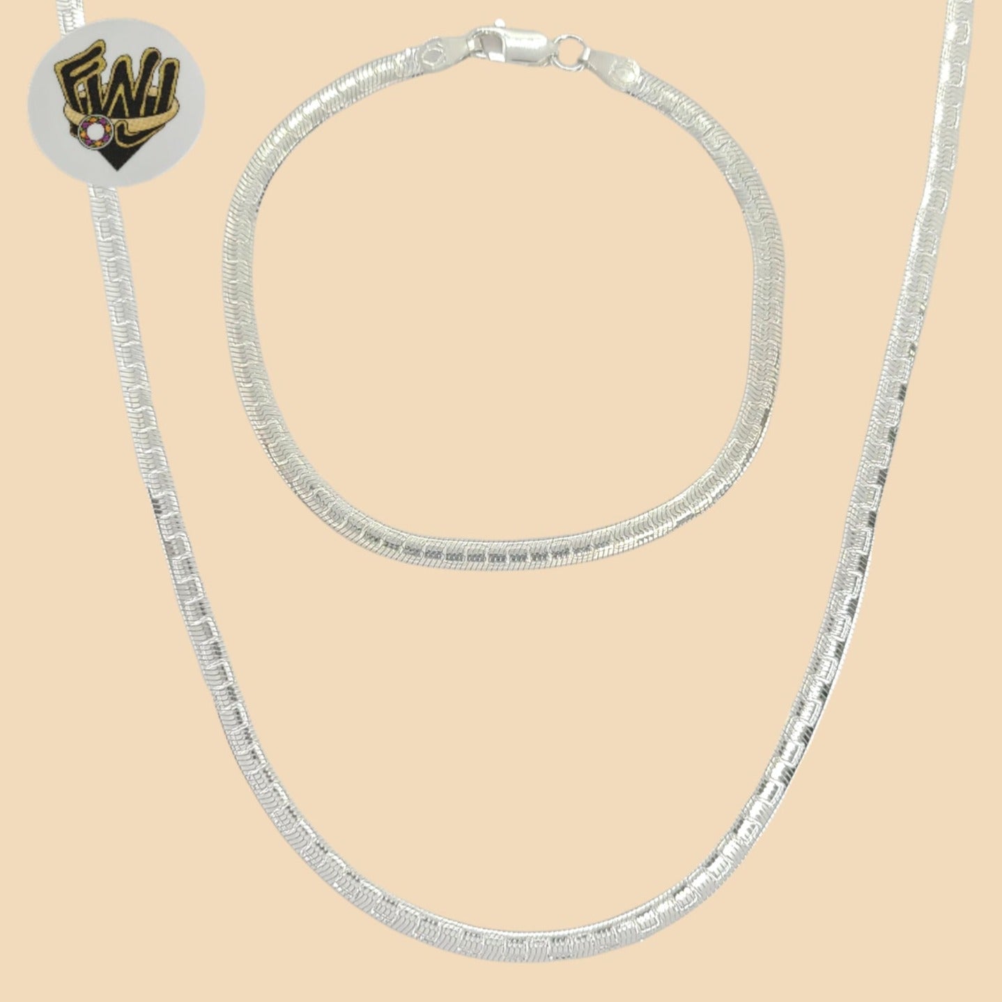 (2-66064) 925 Sterling Silver - 3mm Alternative Herringbone Set.