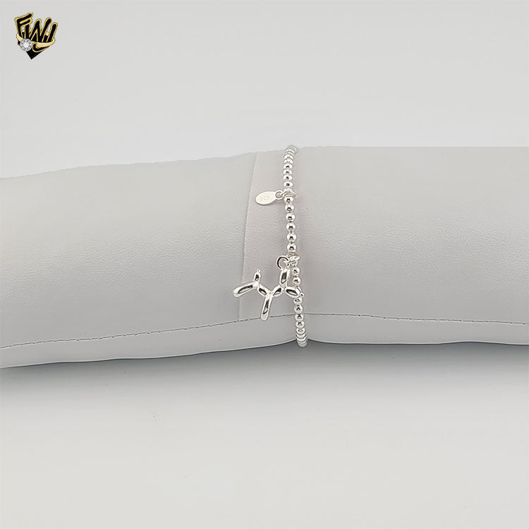 (2-0445) 925 Sterling Silver - 3mm Balls Balloon Dog Bracelet.