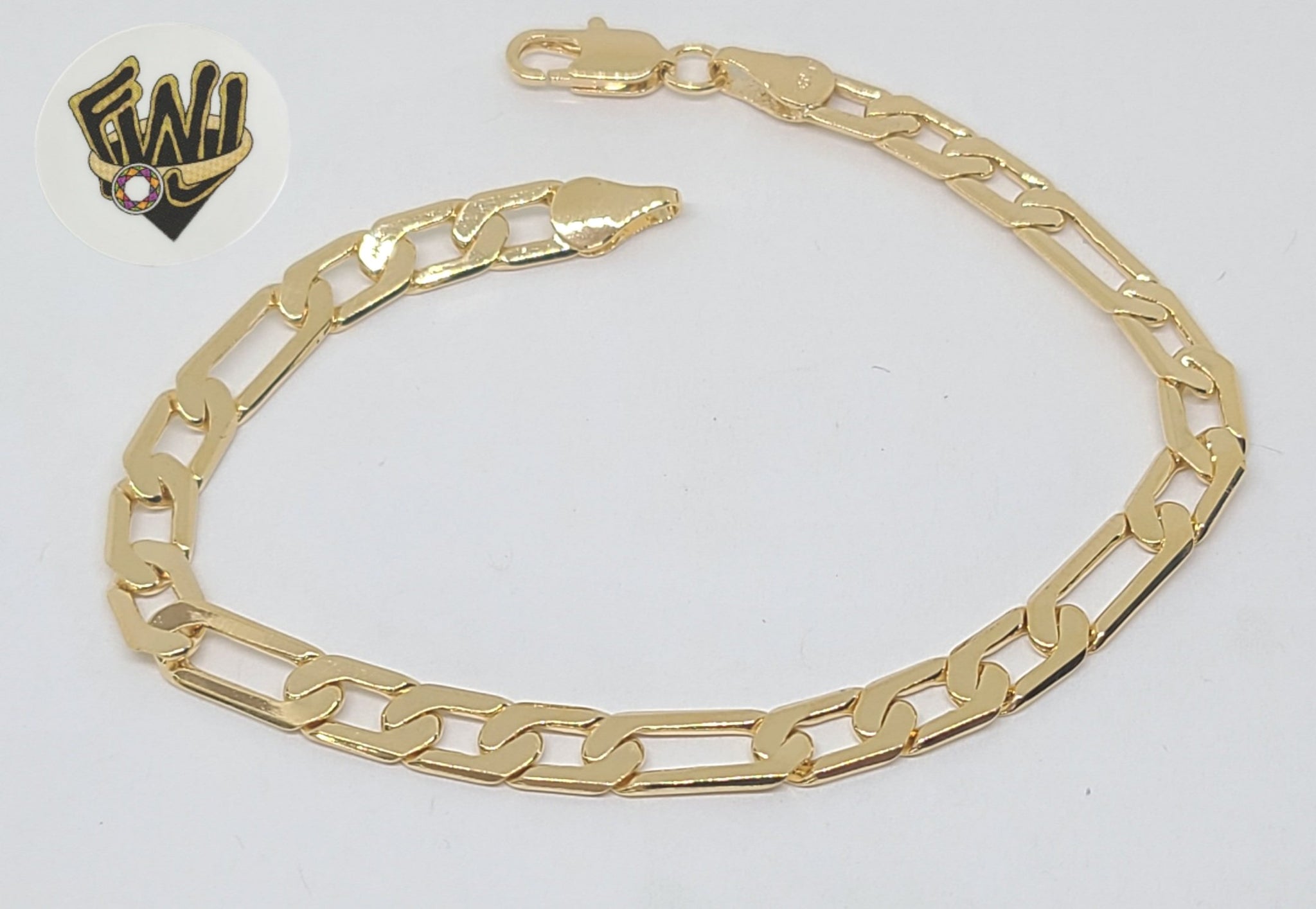 (1-0405) Gold Laminate - 5.5mm Flat Figaro Bracelet - 7.5" - BGF