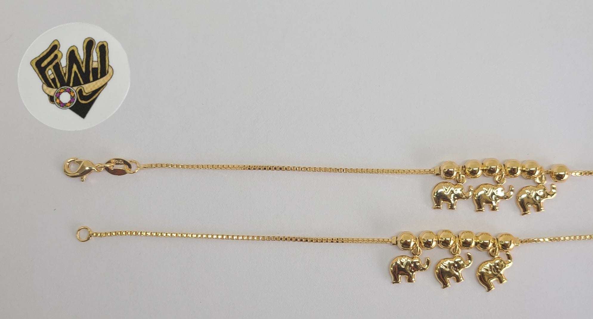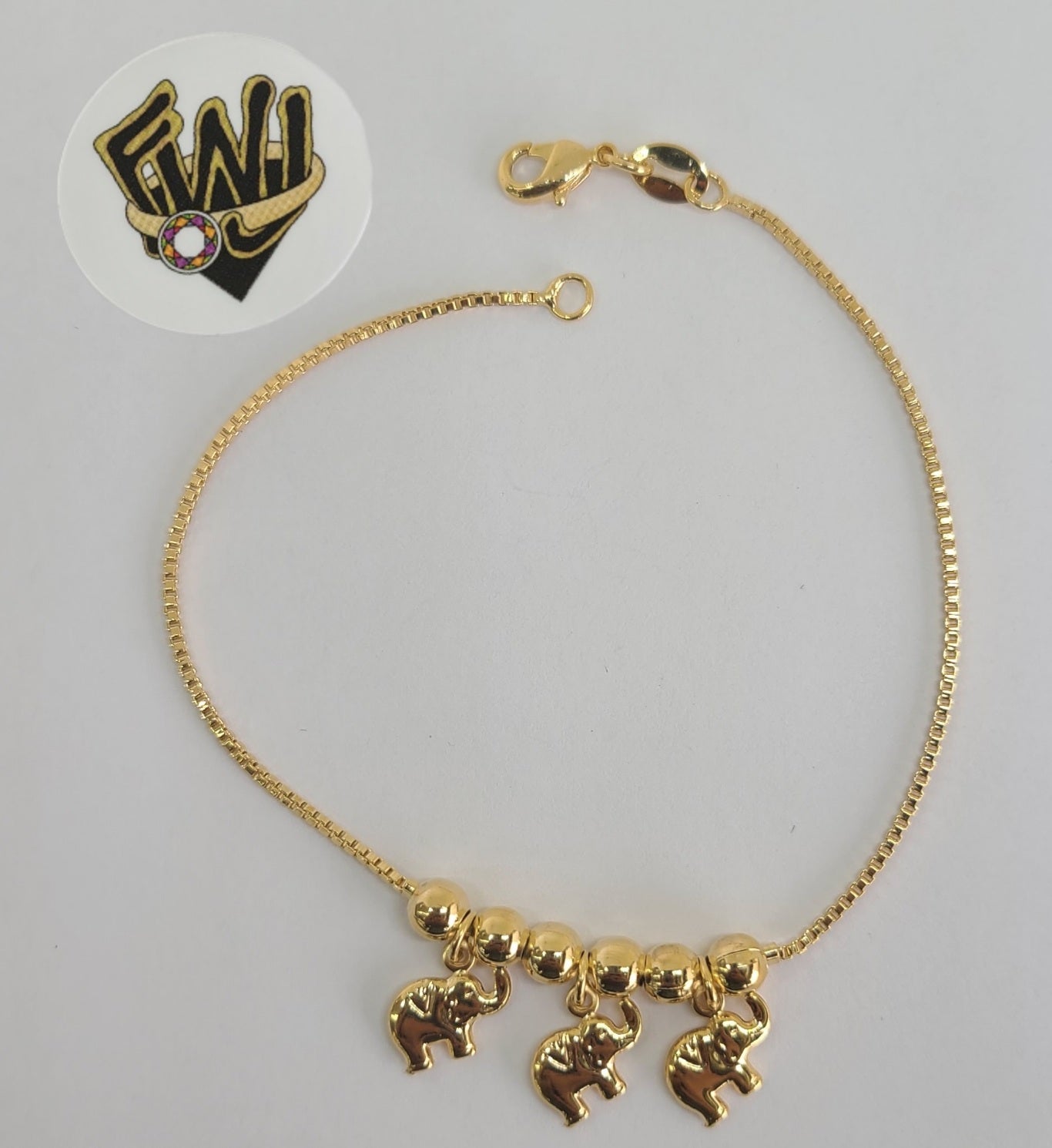 (1-0562) Gold Laminate - 1.5mm Box Link Elephants Bracelet - 7.5" - BGF