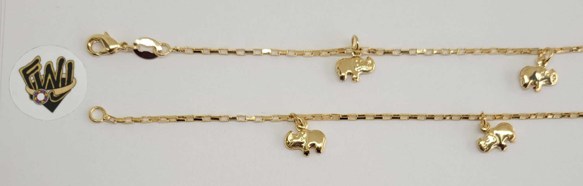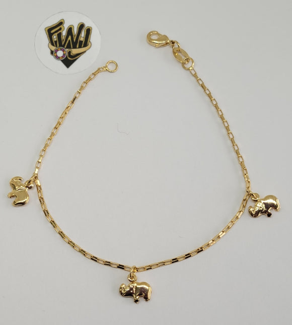 (1-0935) Gold Laminate - 1.5mm Paper Clip Link Elephants Bracelet - 8" - BGO