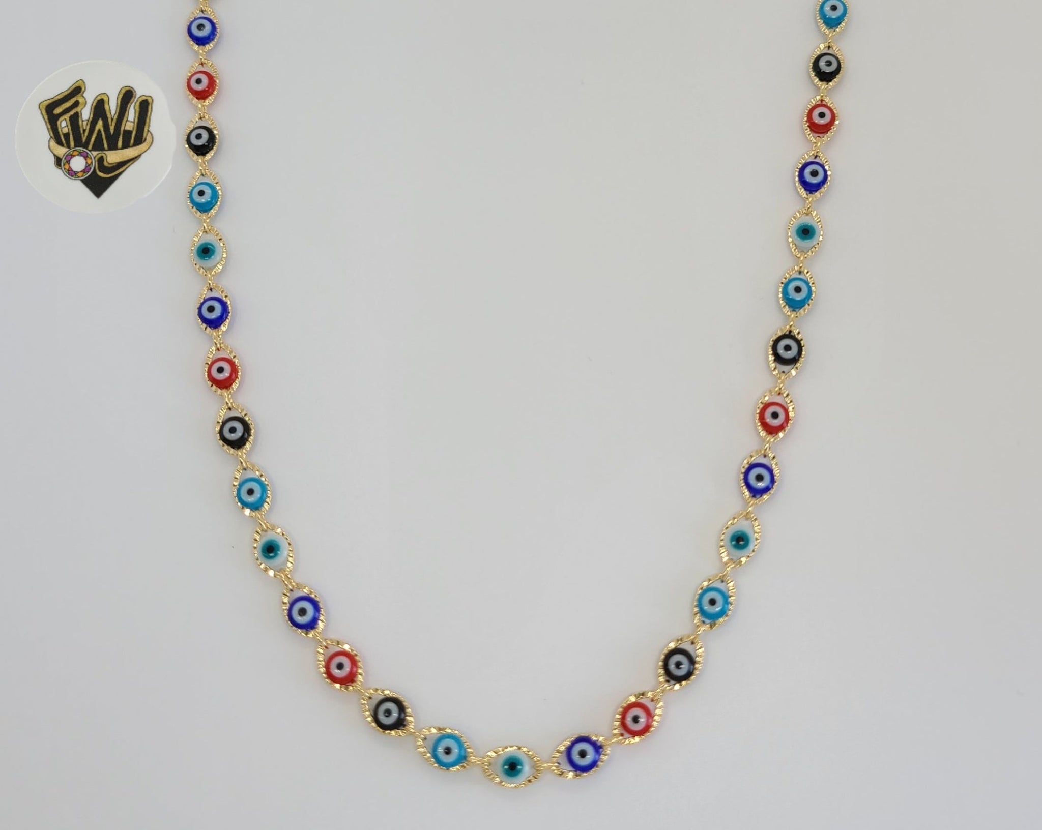 - Evil Eye Link Chain. (Round lobster clasp and open medal tag).