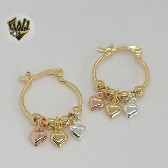 (1-2768) Gold Laminate - Three Tones Heart Hoops - BGF - Fantasy World Jewelry