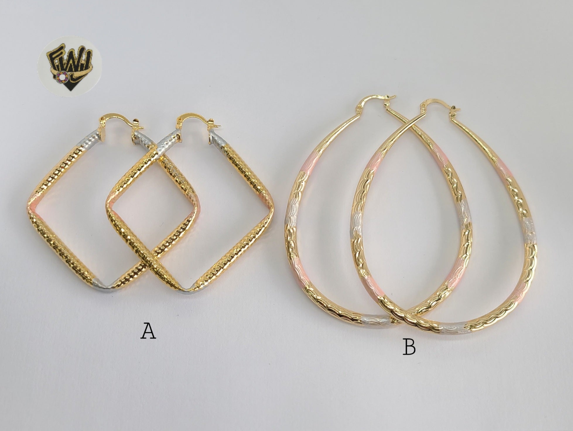 (1-2771) Gold Laminate - Three Tone Hoops - BGO