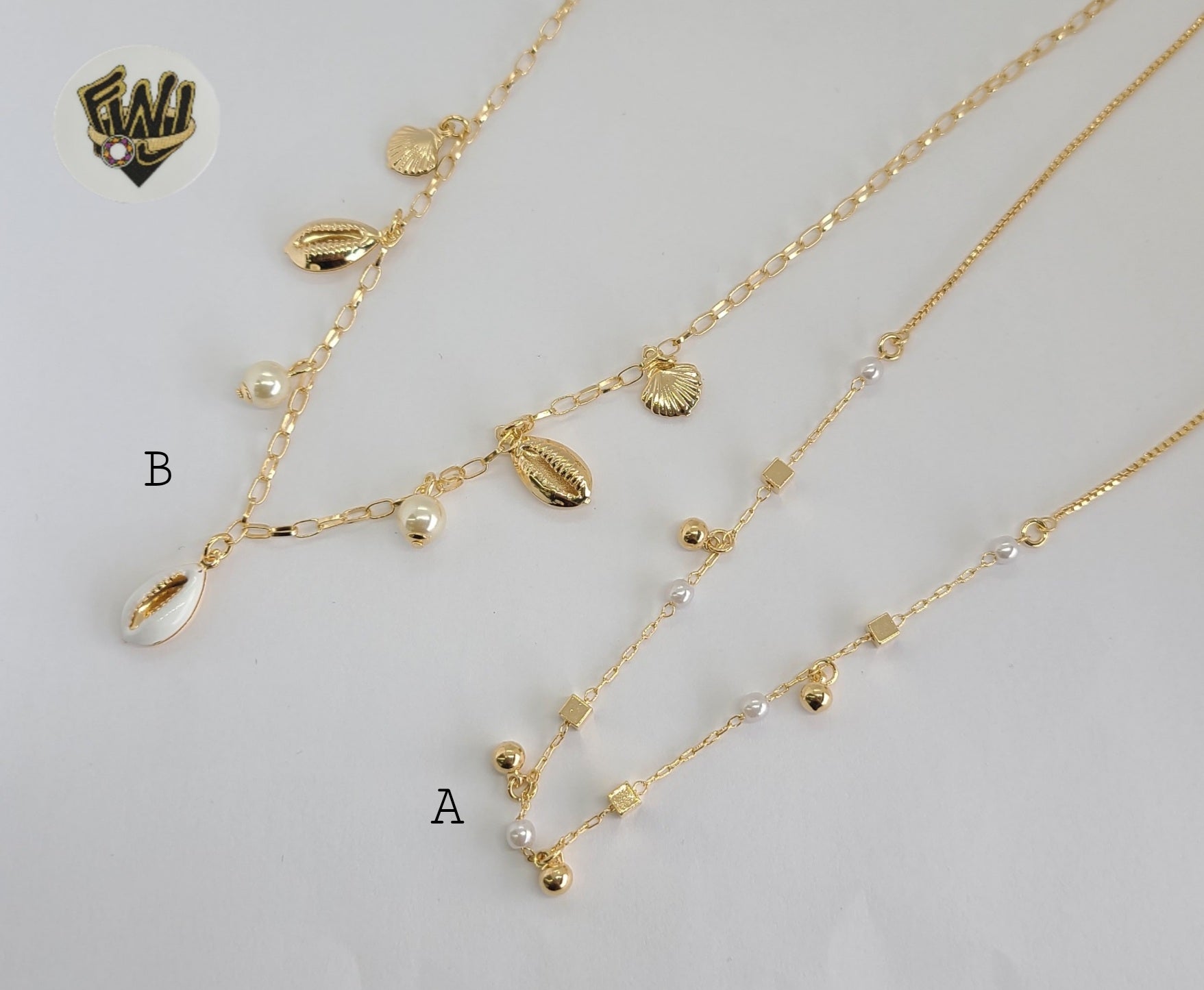(1-6100) Gold Laminate - Pearls Charms Necklace - BGF