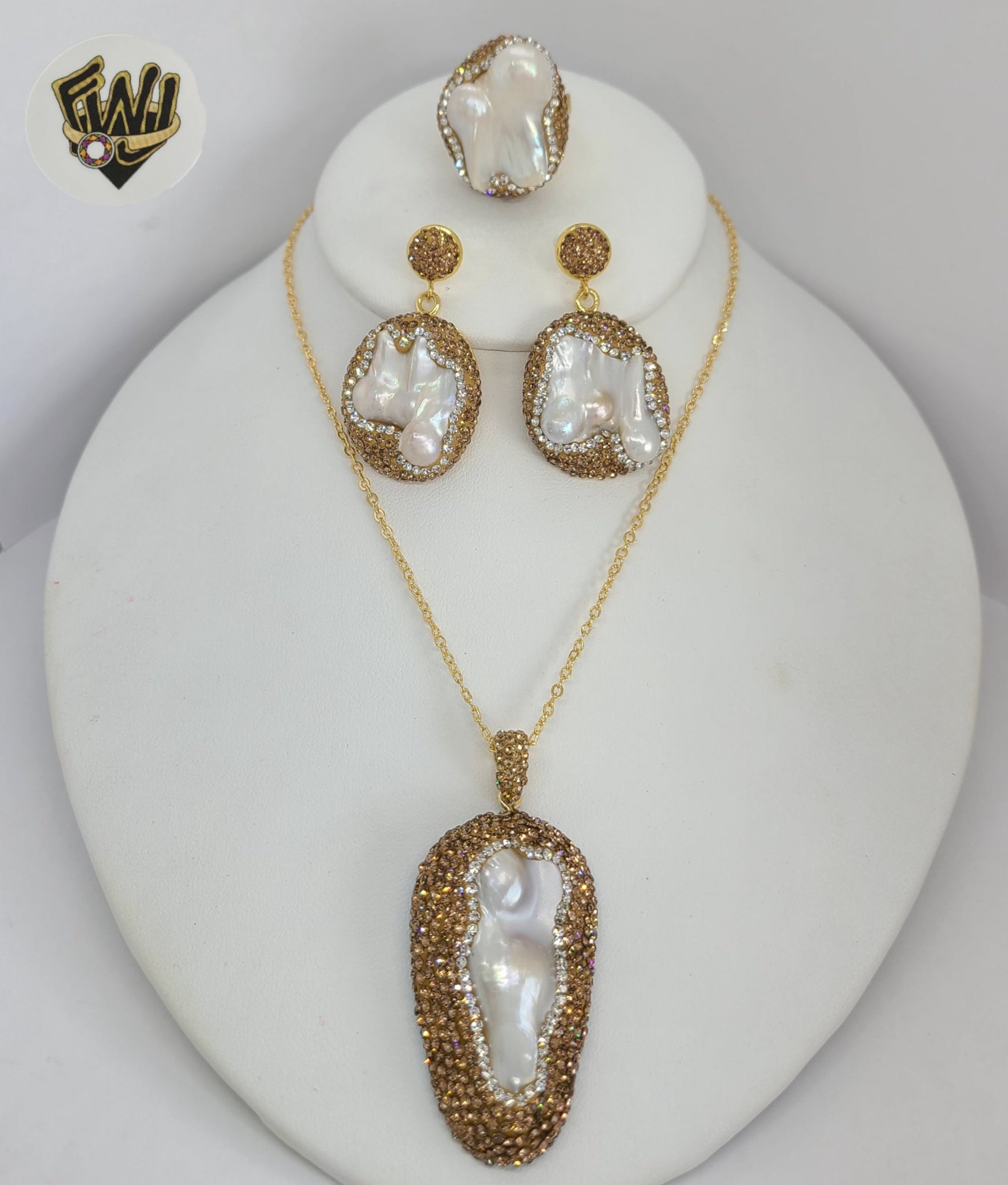 -Earrings, Ring, Pendant and Necklace Stone Set.