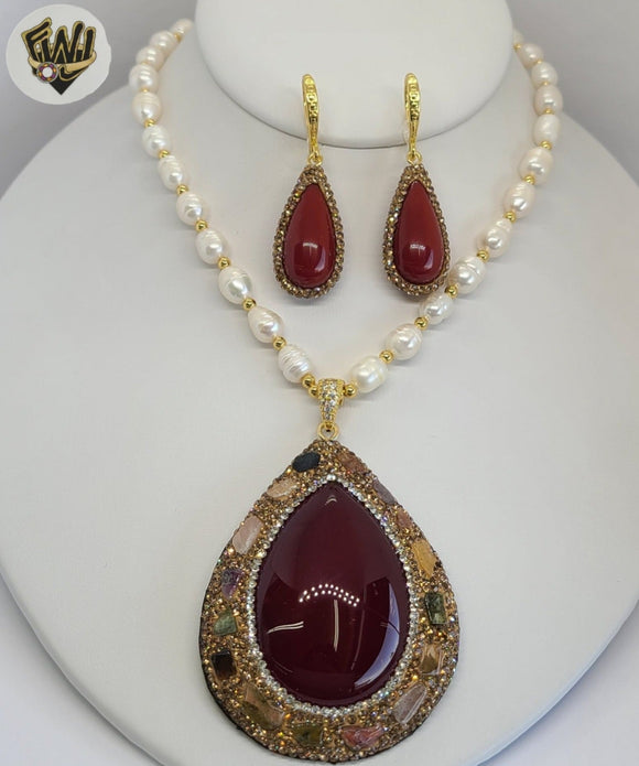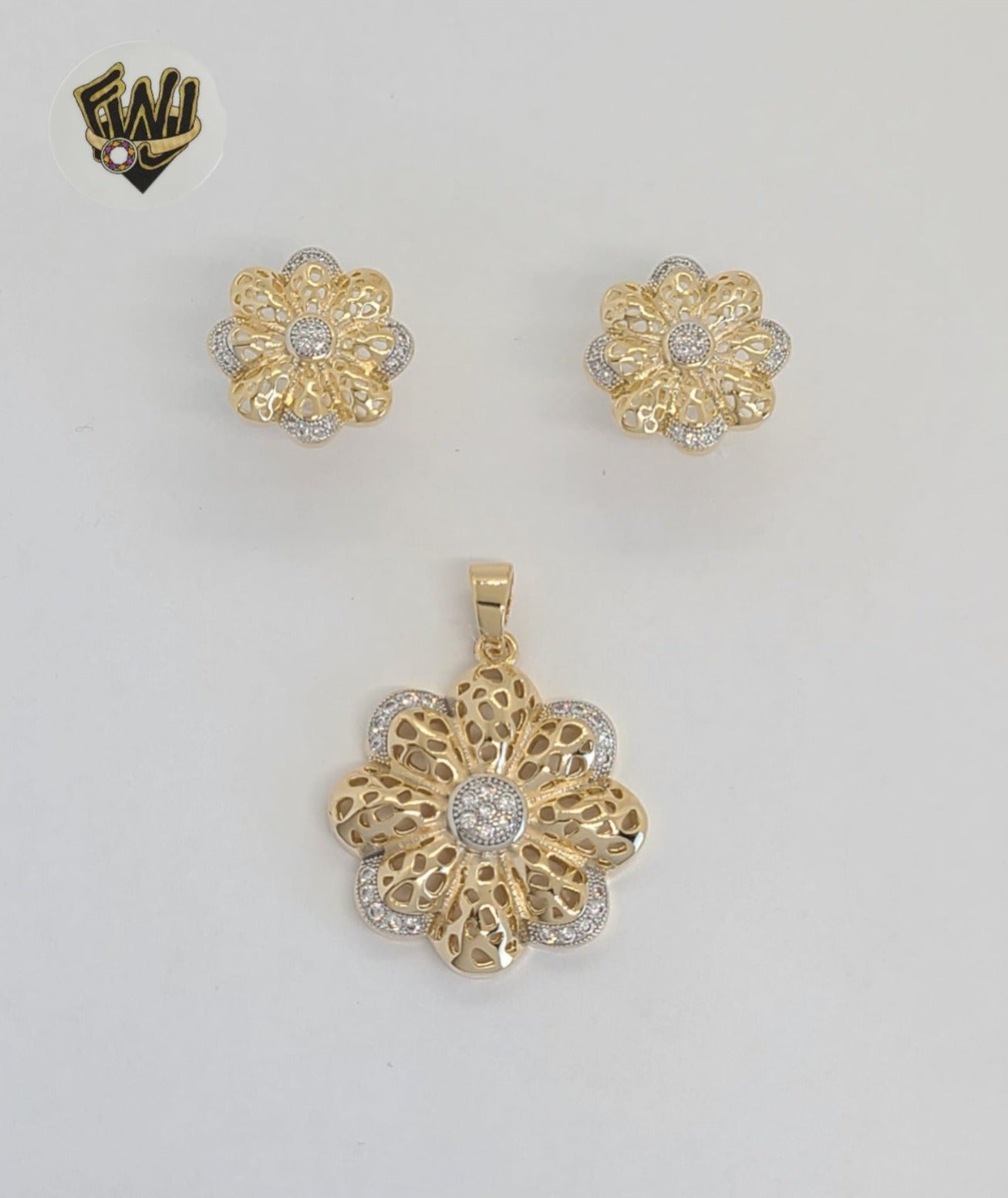 -Earrings and Pendant Zircon Flower Set.