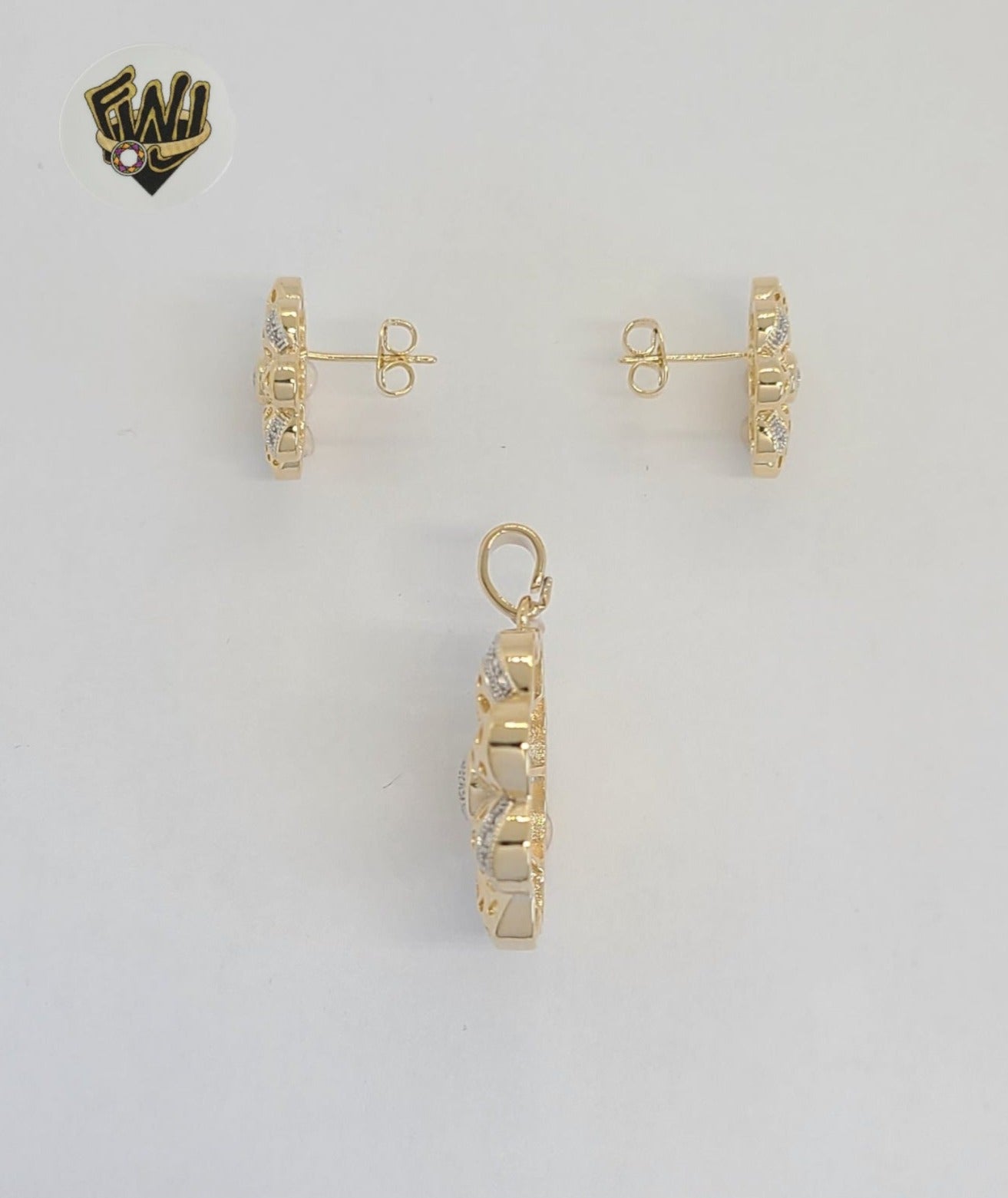 (1-6375) Gold Laminate - Zircon Flower Set - BGF