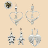 (2-1279) 925 Sterling Silver - Girl and Boy Pendants.