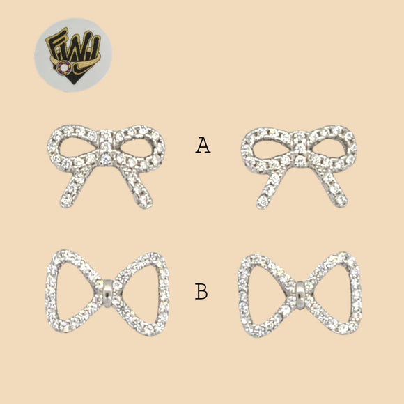 (2-3131-1) 925 Sterling Silver - Zircon Bow Stud Earrings.