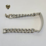 (4-4220) Stainless Steel - 12mm Curb Link Plate Bracelet - 8.5"