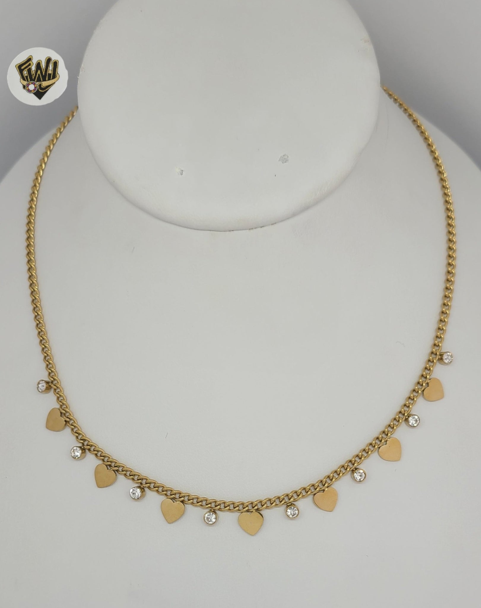 - Curb Link with Heart and Zircon Stone Necklaces.